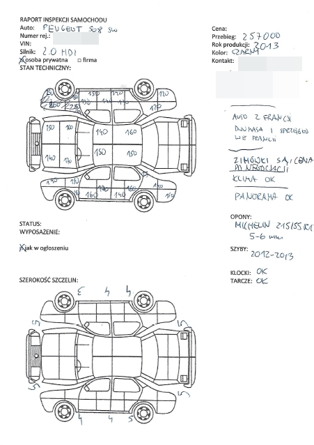 Podczas sprawdzenia samochodu przed zakupem wszystko notuje i umieszczam w raporcie. Po oględzinach samochodu dla klientów wysyłam raport oraz zdjęcia czyli dokumentację fotograficzną tego co zastałem. W raporcie prezentuje więc wszystko co zmierzyłem i zaobserwowałem.